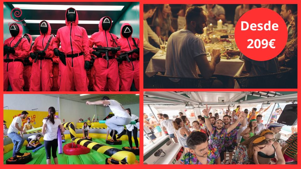 Este paquete todo incluido comienza con una noche de alojamiento en uno de nuestros selectos establecimientos en Málaga, ofreciendo confort y calidad. Elige entre una variedad de actividades emocionantes en YujuLand, el mayor centro de actividades para despedidas, que incluye opciones como Humor Amarillo, Supervivientes, Paintball, Fútbol Burbuja, Juego del Calamar y GranPrix.